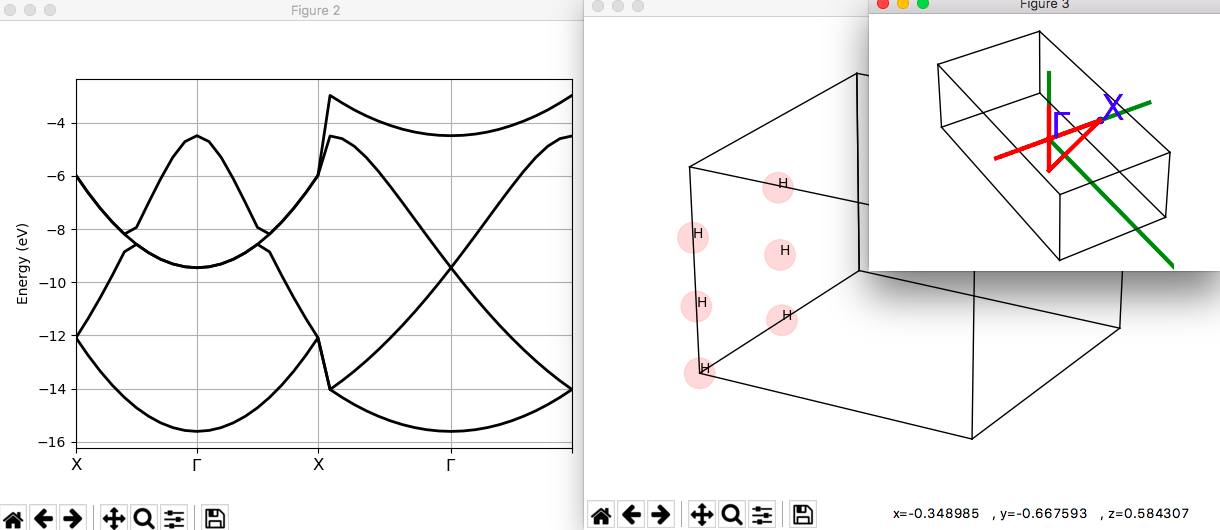 This will plot the band structure of the 6 atom Hydrogen supercell created.