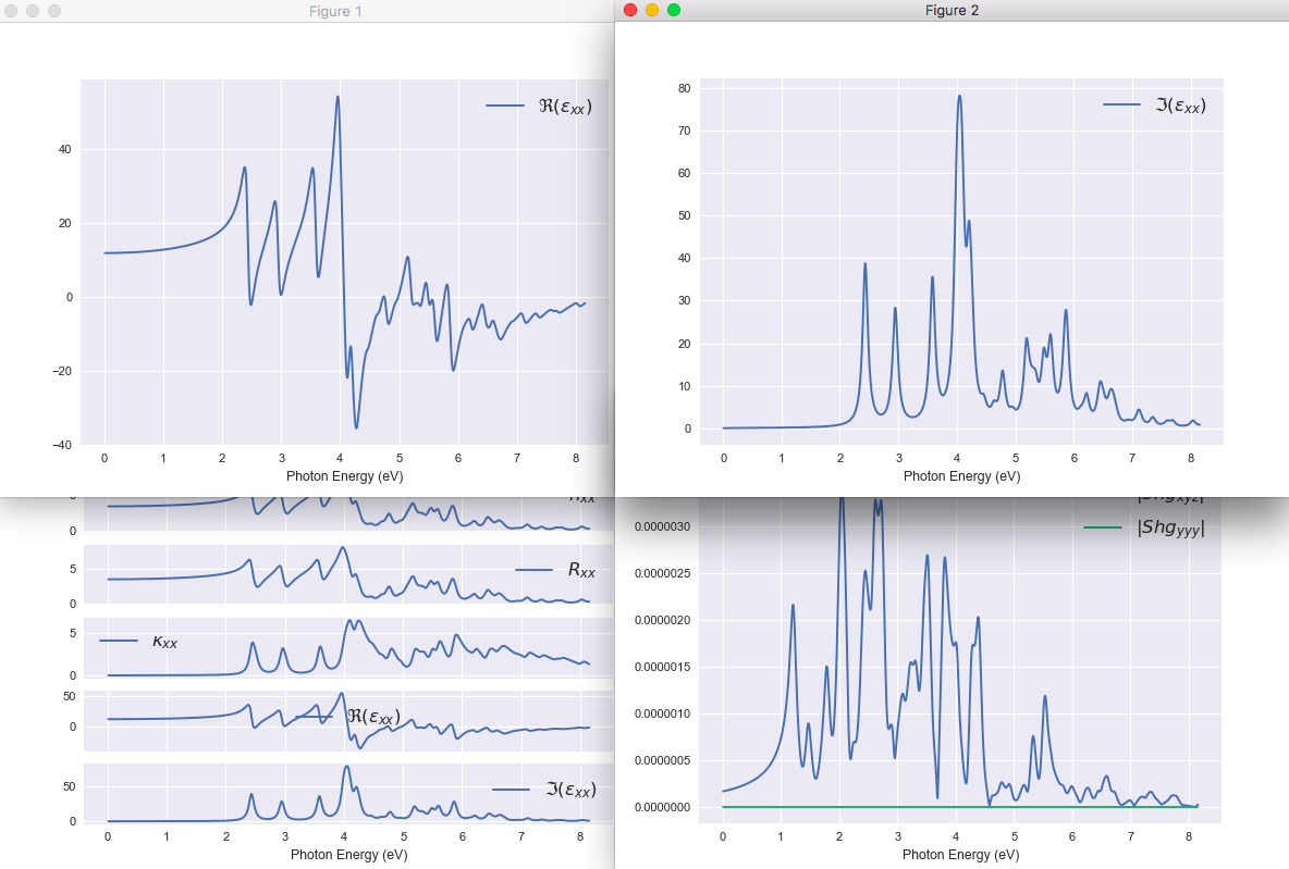 Concerning the non-linear optics, the graphs for the xyz components are also quite bad, with many isolated (but broadened) peaks. However, the yyy ones are perfect. Indeed, they vanish due to symmetry reasons! Visualize the imaginary part with: