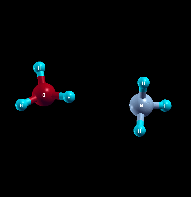 You can visualize the initial and final states of the reaction below (H atoms are in white, the O atom is in red and the N atom in grey).