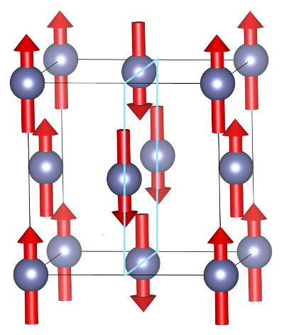 For instance, if the atom at [x,y,0] possesses an “up” magnetization, the atom at [x+½,y,½] would possess a down magnetization etc… To describe such a structure, a unit cell with two atoms is sufficient, [0,0,0] and [½,0,½]. The atoms will be given opposite magnetization with the help of the variable spinat.